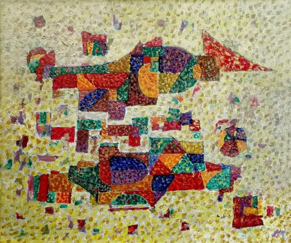 Paysage abstrait, huile sur toile, signée et datée 62/7, 54x65 c...