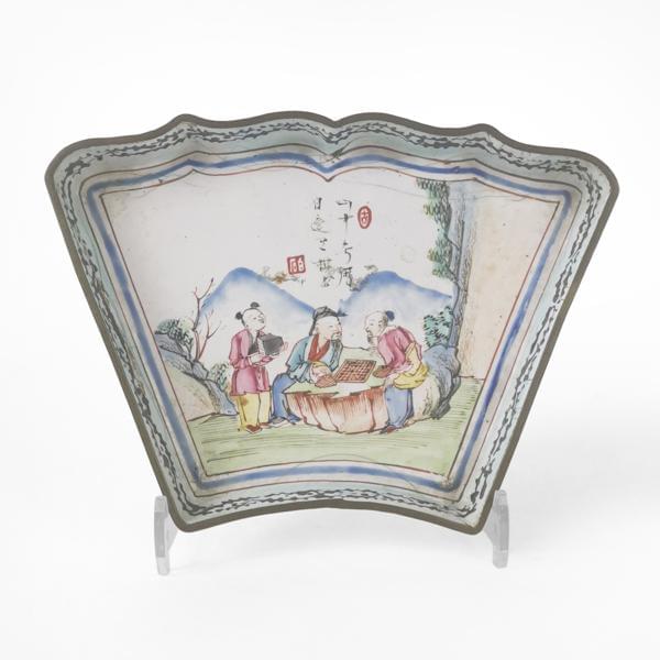 Cuivre émaillé à motif de lettrés dans un jardin, 11x15 cm