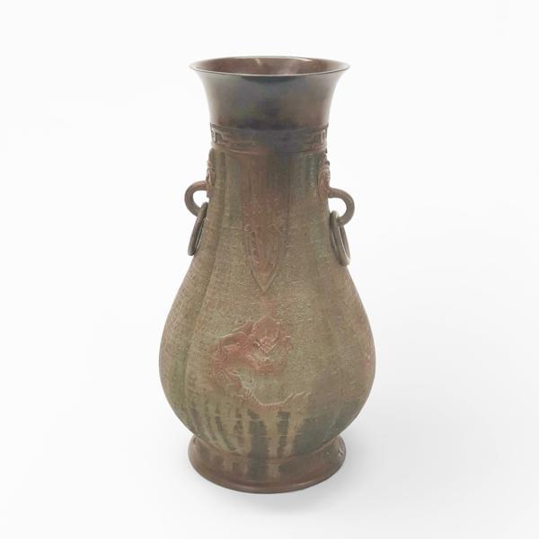 Bronze à patine brune à motifs d'animaux stylisés, H 22 cm