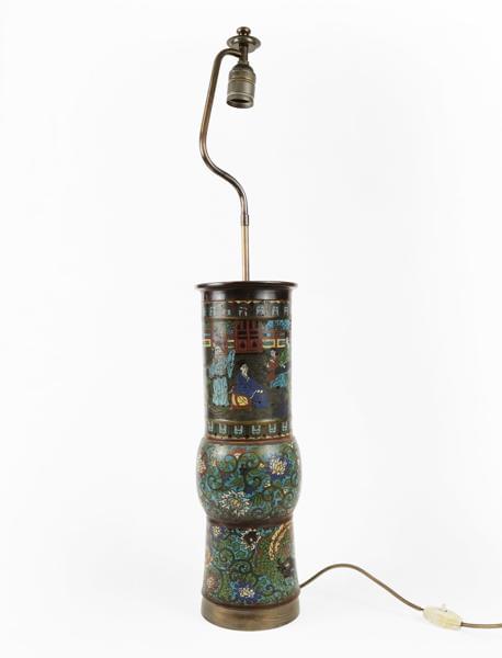 4718. Vase rouleau en cloisonné monté en lampe, Chine, XIXe-XXe s