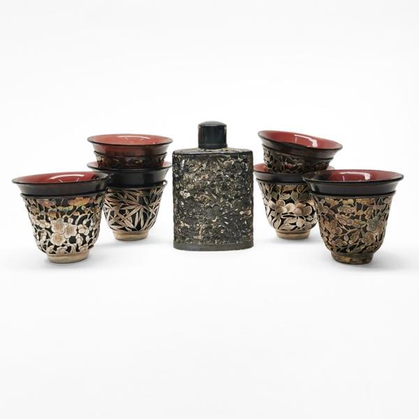 4724. Six tasses et un flacon, Chine