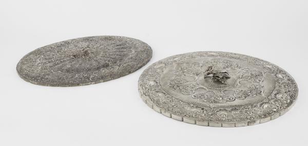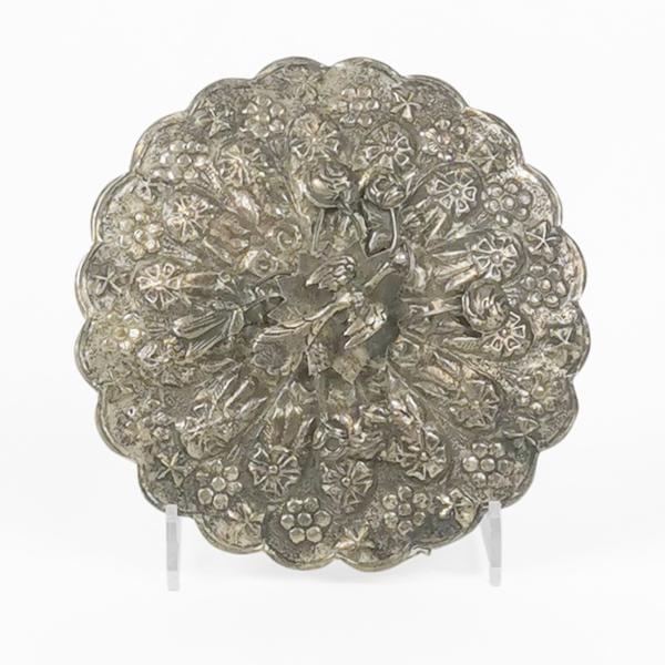 Argent repoussé à décor de fleur et scènes animées, D de 4 à 5,5...