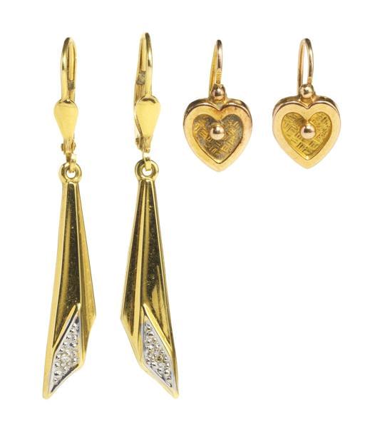 Or 750, H 4 cm. On joint une paire de dormeuses cœur en or 750....