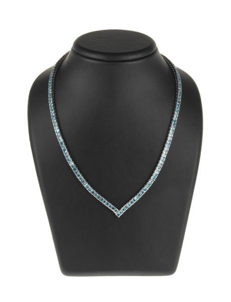 3114. *Collier en chevron composé d'une ligne de topazes bleues taille...