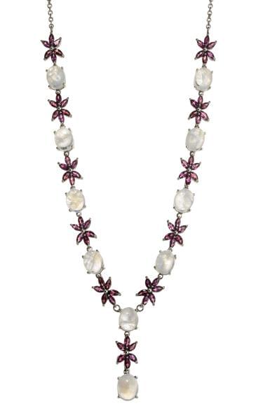 Rehaussées de rhodolites en cascade, terminées par une opale et...