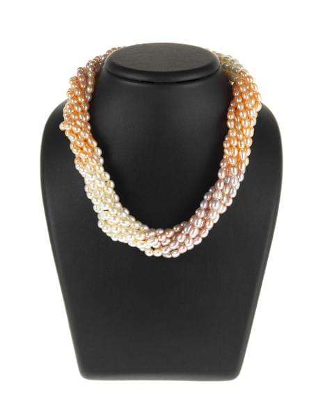3116. *Collier multi-rangs torse de perles blanches, rosées et orangée...