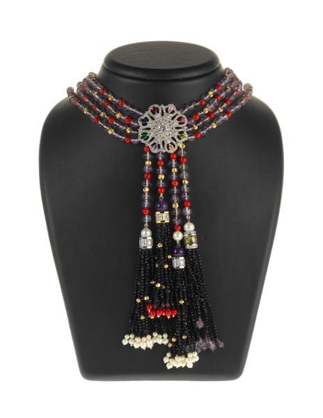 3117. *Collier composé de trois rangs de perles d'améthystes et de cor...