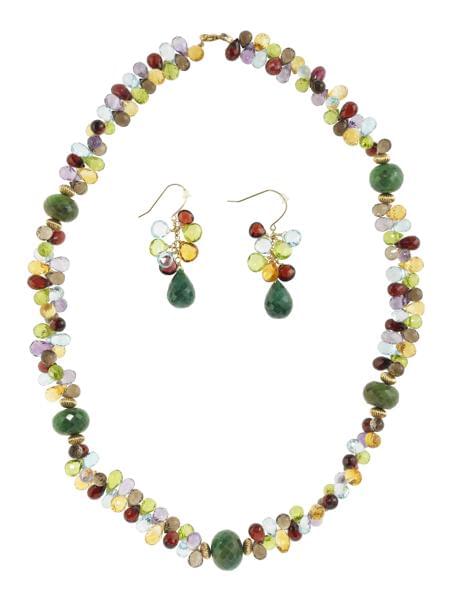 Composés d'émeraudes facettées et de pierres fines taille briole...