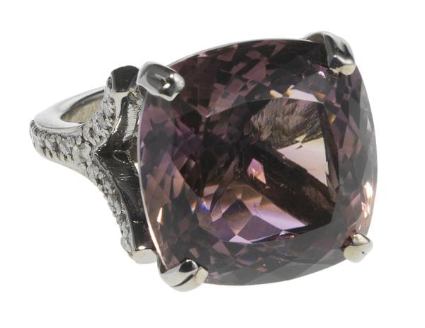 3123. *Bague sertie d'une améthyste taille coussin (28,15 ct) sur une...