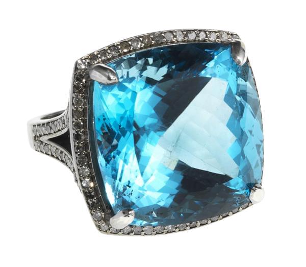 3124. *Bague sertie d'une topaze bleue taille coussin (57,9 ct) entour...