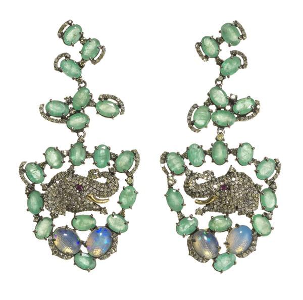 3127. *Pendants d'oreilles à motifs d'une tête d'éléphant pavée de ros...