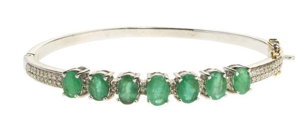 3129. *Bracelet jonc ouvrant serti d'une ligne d'émeraudes taille oval...