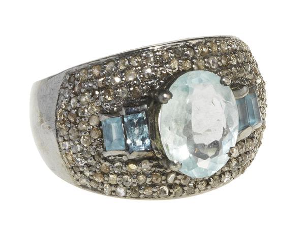3102. *Bague sertie d'une topaze bleue taille ovale (env. 5 ct) sur un...