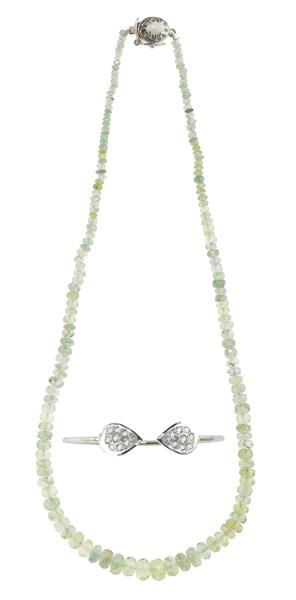3131. *Lot d'un collier, d'un bracelet et de pendants d'oreilles serti...