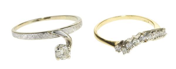 L'un sertie d'un diamant solitaire (env. 0,3 ct) et l'autre com...