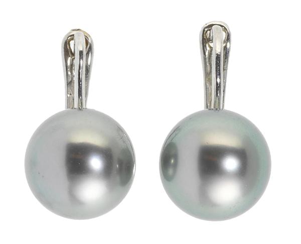 3160. *Boucles d'oreilles dormeuses serties de perles de Tahiti (D env...