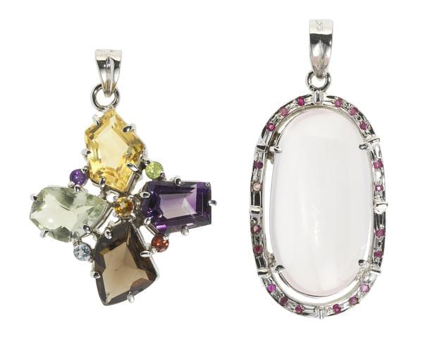 L'un formant une croix stylisée et serti de diverses quartz reha...