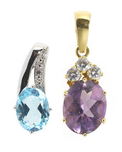 L'un serti d'une améthyste taille ovale rehaussée de pierres d'i...