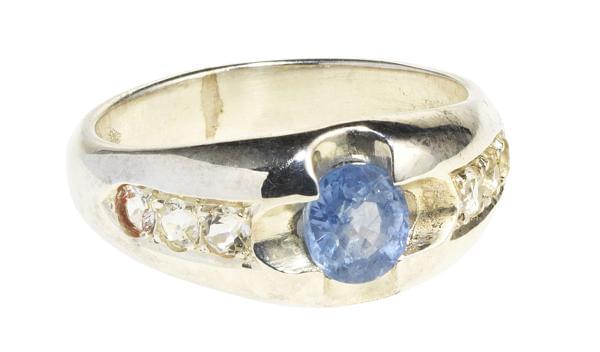 3176. Bague sertie d'un saphir taille ovale (env. 0,8 ct) épaulé de to...