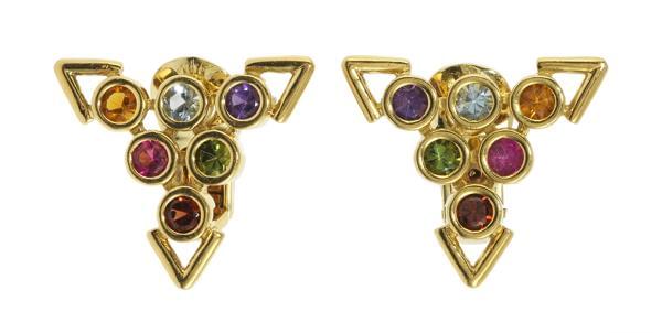 3182. Clips d'oreilles triangulaires ajourés sertis de diverses pierre...