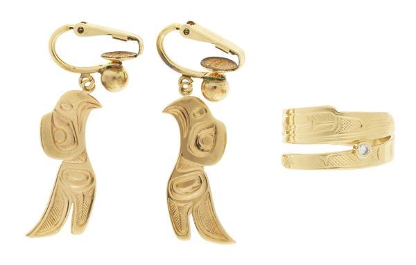3184. Ensemble d'une bague et de clips d'oreilles stylisés amérindiens