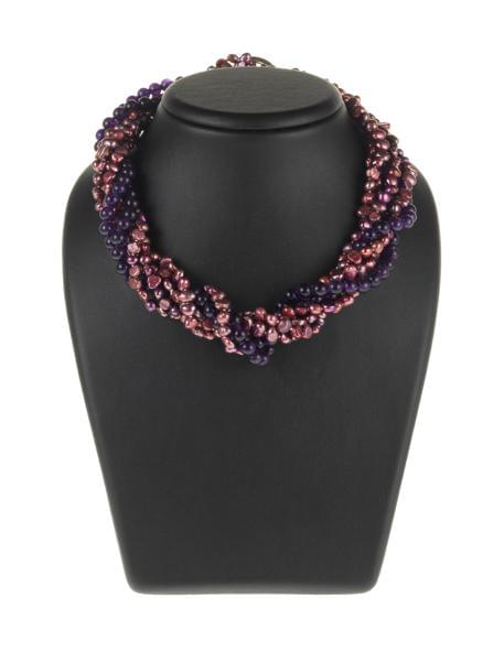 3157. *Collier tour de cou à effet feuillagé pavé d'améthystes taille...