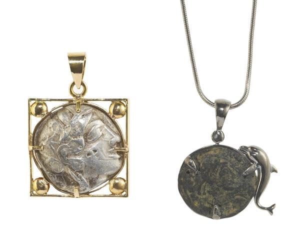 3188. *Pendentif carré serti d'une pièce probalement antique