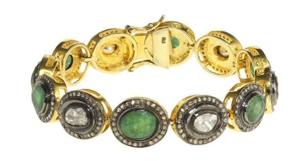 3191. *Bracelet serti d'émeraudes et de diamants en table en alternanc...