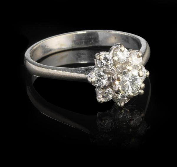 3193. Bague fleur centrée d'un diamant (env. 0,3 ct) entouré de diaman...