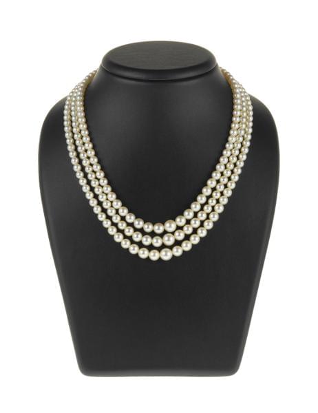 3196. Collier composé de trois rangs de perles en chute terminé par un...