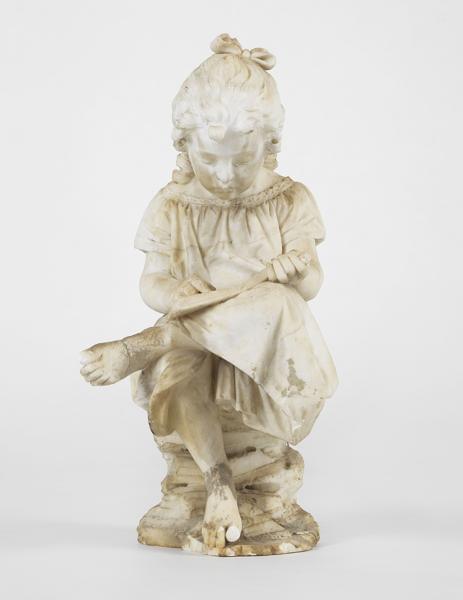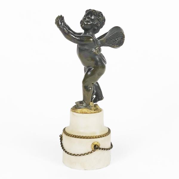 Amour sur un piédestal, bronze à patine brune, marbre blanc et b...