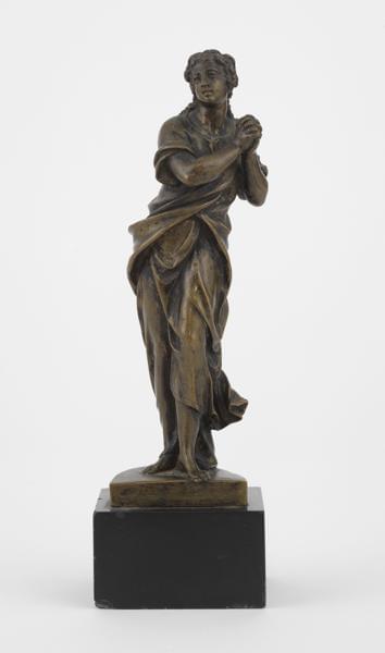 Femme drapée à l'antique, bronze, traces de patine noire, H 17 c...