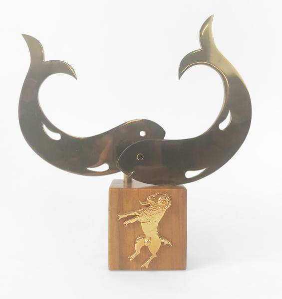 Poissons, bronze, signé et daté 1983, H 27 cm