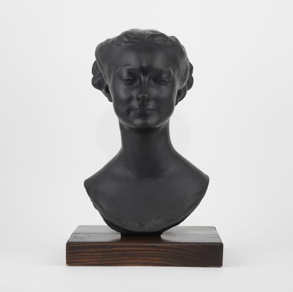 Buste de fille à la colombe, bronze à patine brune, H 23 cm, soc...