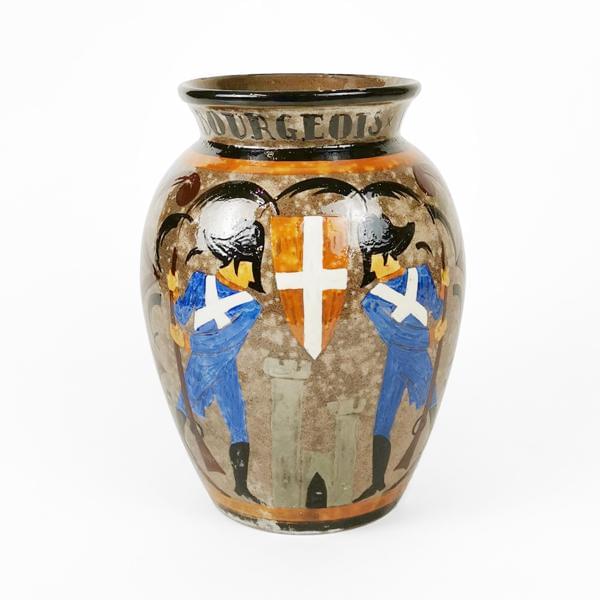 5218. Vase à décor de soldats dédicacé "Tir Cantonal Fribourgeois, Rom...