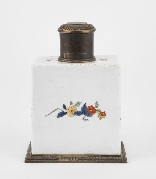 Porcelaine émaillée polychrome et à décor de décalcomanie de fle...