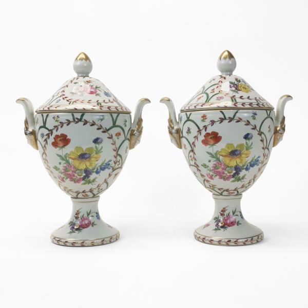 5265. Paire de vases couverts dans le goût de Saxe ou Limoges