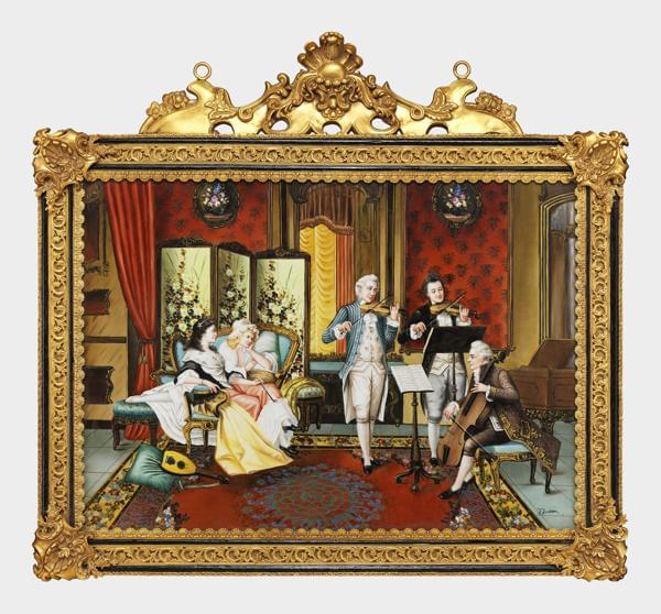 Porcelaine émaillée à décor de personnages avec monture en bronz...