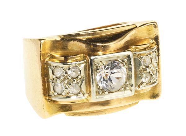 3208. Bague de style tank sertie de topazes blanches