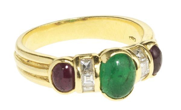 3216. Bague sertie d'une émeraude taille cabochon (env. 0,8 ct)