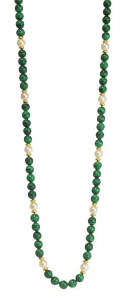 3219. Collier de perles de malachite ponctué de perles blanches et de...