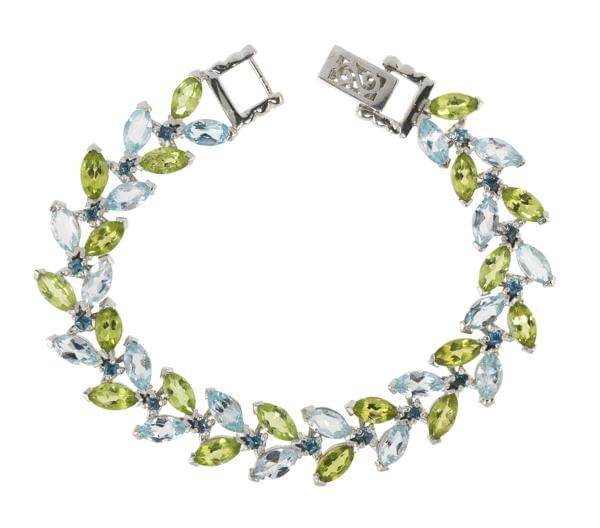 3221. *Bracelet ligne à effet feuillagé serti de péridots et topazes b...