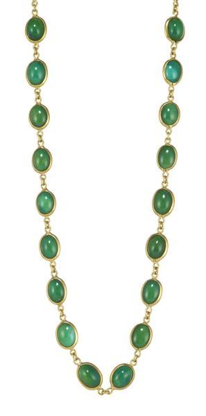 Fermoir émaillé bleu et vert en or 750, L 61 cm