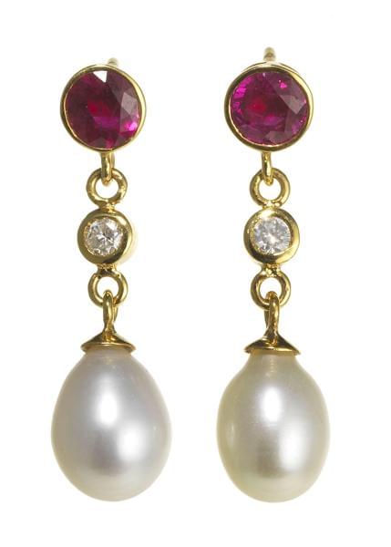 3239. *Pendants d'oreilles retenant chacun une perle en goutte (D env....