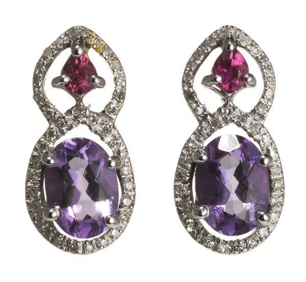 3240. *Boucles d'oreilles ajourées serties d'une améthyste taille oval...