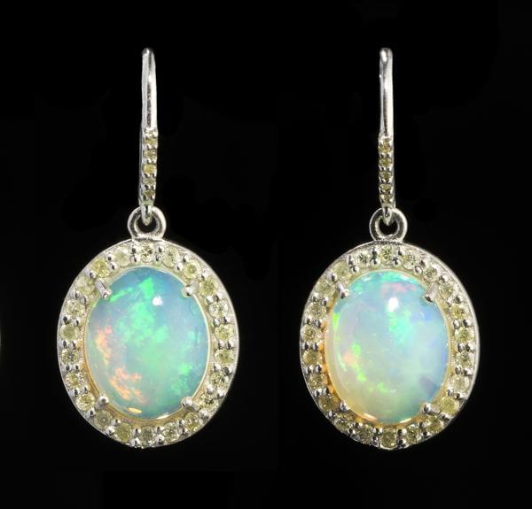 3297. *Pendants d'oreilles centrés d'opales taille cabochon ovale (tot...