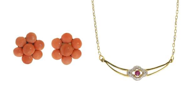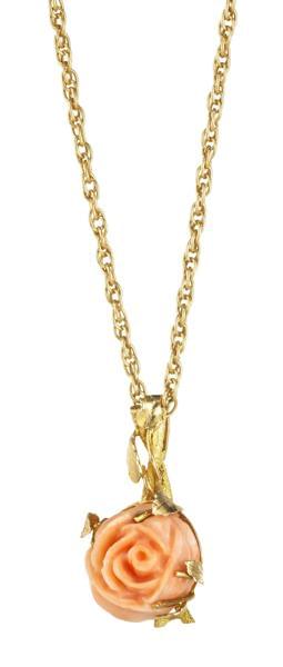 3277. Chaîne retenant un pendentif serti d'une rose en corail
