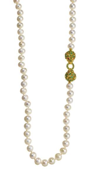 3255. *Sautoir ouvrant d'un rang de perles (D env. 9,5 mm)