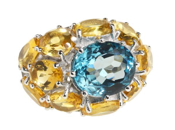 L'une sertie d'une citrine navette et l'autre d'une aigue-marine...