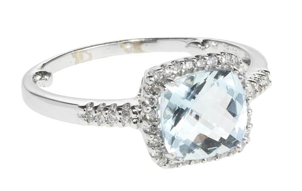 3273. Bague sertie d'une aigue-marine coussin facettée entourée et épa...
